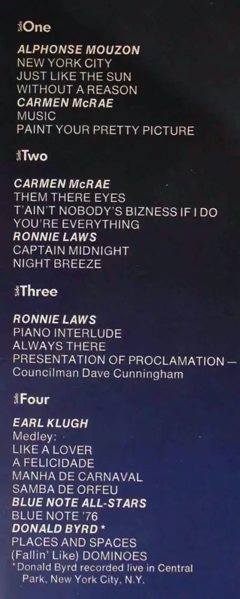 feat Alphonse Mouzon, Carmen McRae, Ronnie Laws, Earl Klugh, Donald Byrd, Blue Note AllStars