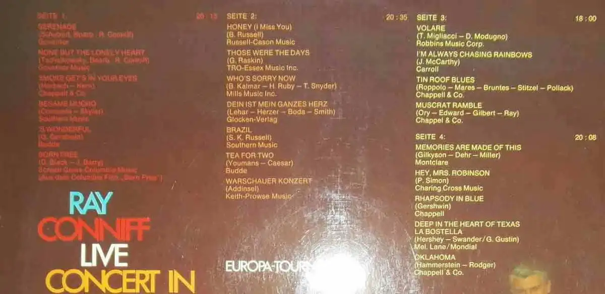 2LP Ray Conniff: Live Concert in Stereo Europa Tour 1969 (CBS S 66 219)) D