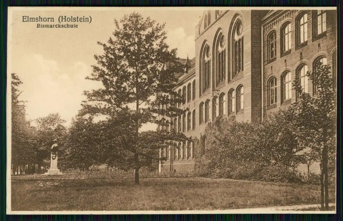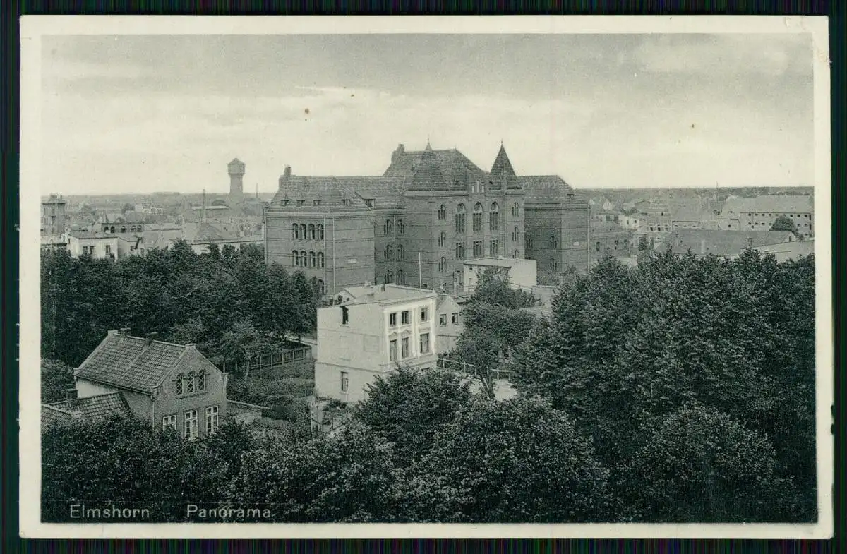 2x AK Elmshorn in Holstein Panorama Wasserturm und Bismarckschule 1933 gelaufen