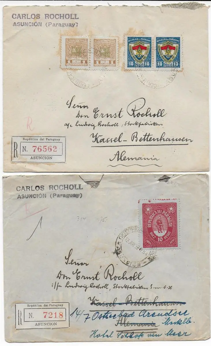 2x Einschreiben Asuncion nach Kassel-Bettenhausen 1936+1937