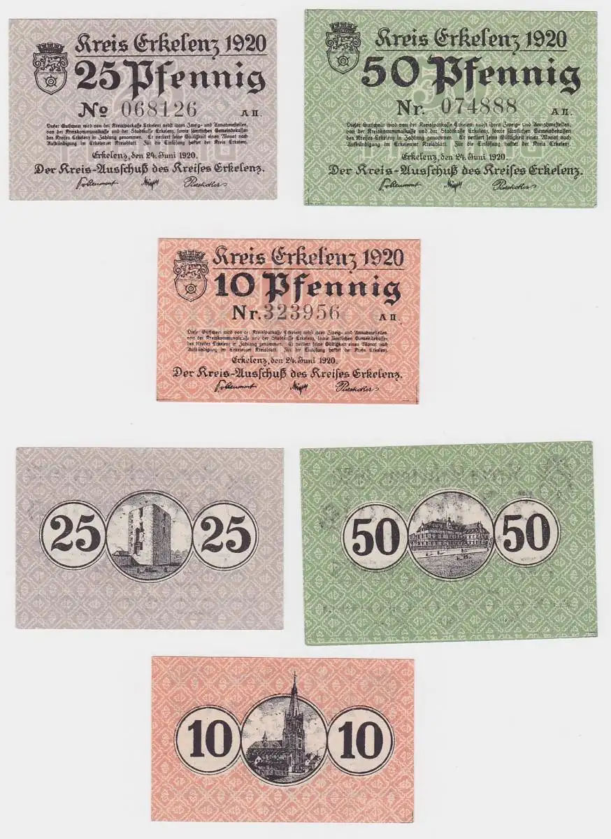 3 Banknoten Notgeld Kreis Erkelenz 24.Juni 1920 (120541)