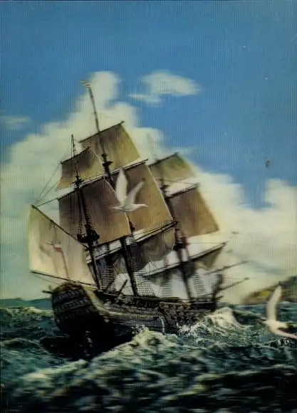 3 D Ak Segelschiff auf See, Dreimaster, Möwen