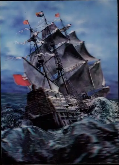 3 D Ak Segelschiff bei starkem Wellengang, 3 Master