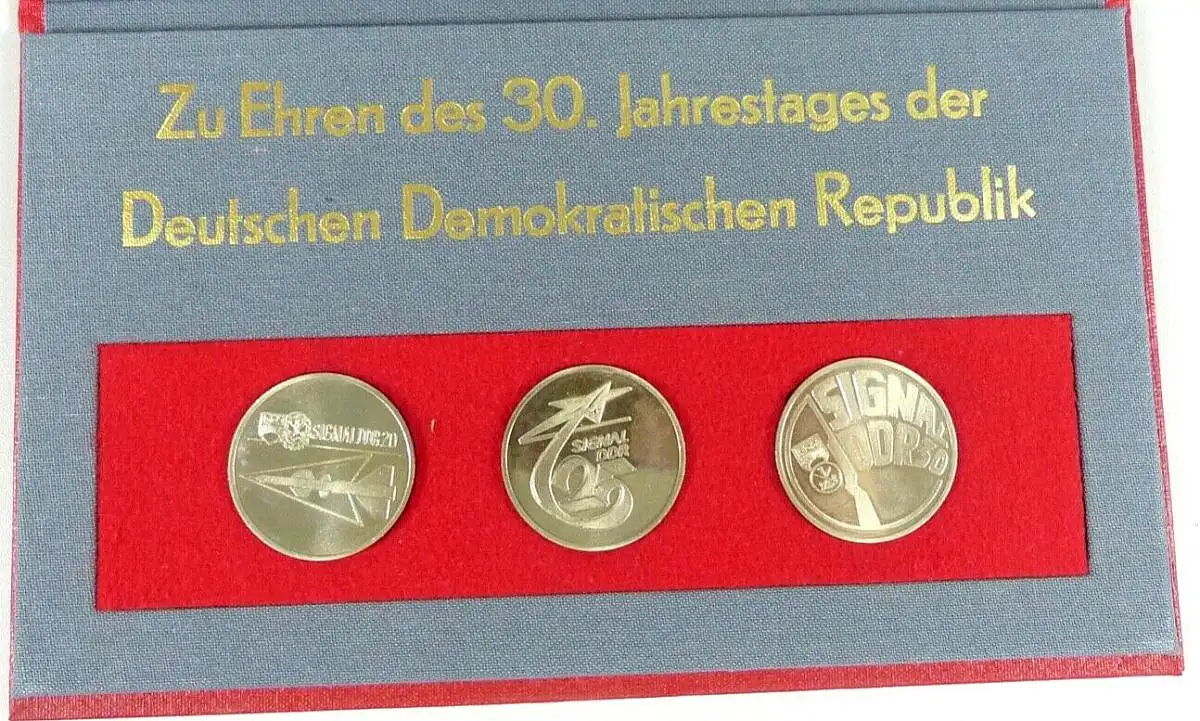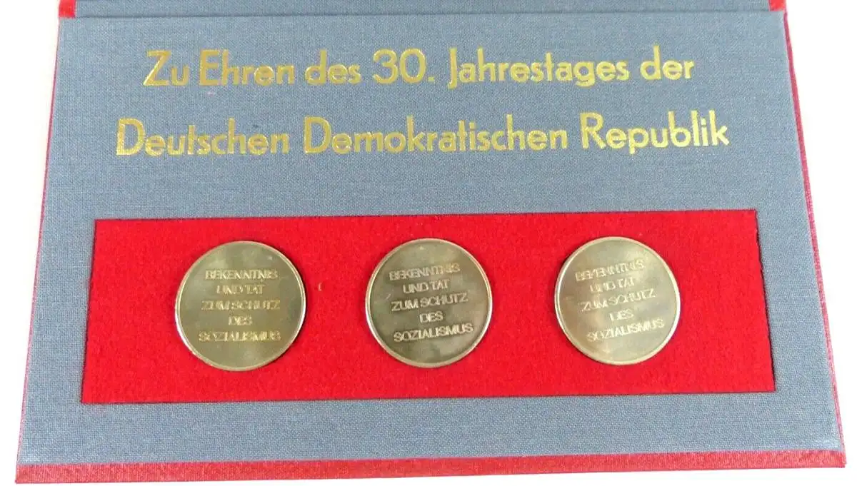 Bitte schauen Sie auch in unsere anderen Auktionen und in unseren Shop original alter Präsentkasten mit 3 Medaillen Signal 20, 25 und 30 Jahrestag der DDRsehr schöne ErhaltungGröße 3,5 cm Die Fotos sind Bestandteil des Angebots. Auktionbedingungen über Zahlung und Versand: Bezahlung fällig nach Auktionsende. Keine Schecks!!! No checks!!! Sie werden innerhalb von 24 Stunden nach Auktionsende von uns über ebay automatisch angeschrieben. Unser Unternehmen nimmt an dem Befreiungssystem gem. § 6 Abs. 3 (ab 01.01.2009 § 6 Abs. 5) VerpackV teil, wir haben einen FREISTELLUNGSVERTRAG mit der Landbell AG geschlossen. Bitte beachten Sie auch meine anderen Auktionen! Antikhandel Wilfried Boschan Steuer ID DE 167790774 Mehrwertsteuerhinweis: Unsere Artikel unterliegen der Differenzbesteuerung, nach §25a UStG Bei den angebotenen Artikeln handelt es sich um gebrauchte Ware, ein gewisses Maß an Alterungs- und Gebrauchsspuren ist immer vorhanden. Wir geben uns die größte Mühe alles genauestens zu beschreiben, aber wir sind nur Menschen und Menschen machen manchmal Fehler.