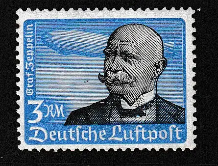 3. Reich: 3 RM Graf Zeppelin mit waager. Gummierung, **, Gepr. Schlegel