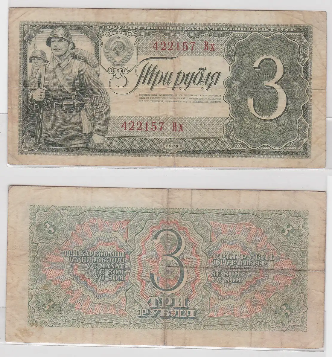3 Rubel Banknote Russland Sowjetunion 1938 PIC 214 (153521)