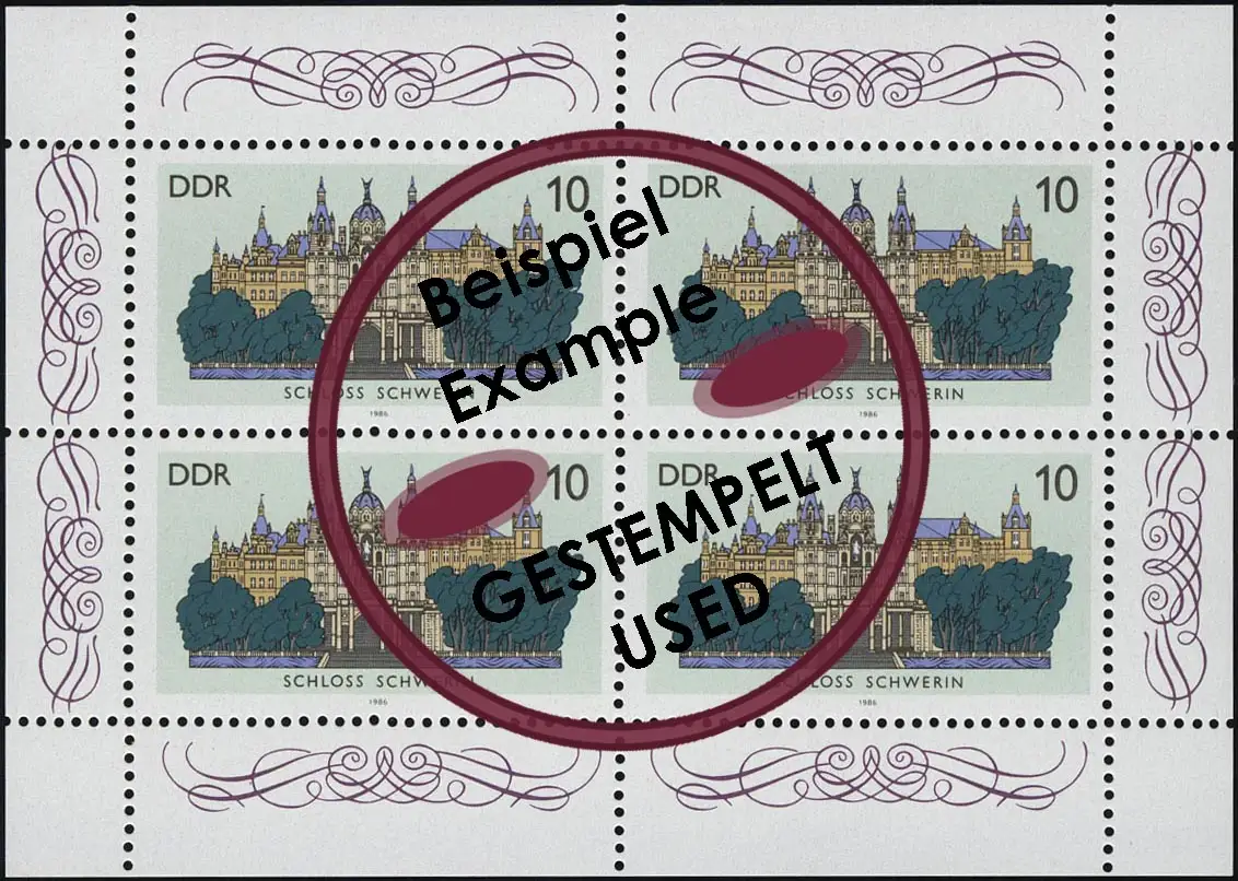 3032 Schlösser-Kleinbogen Schwerin 4x 10 Pf 1986, Tagestempel O