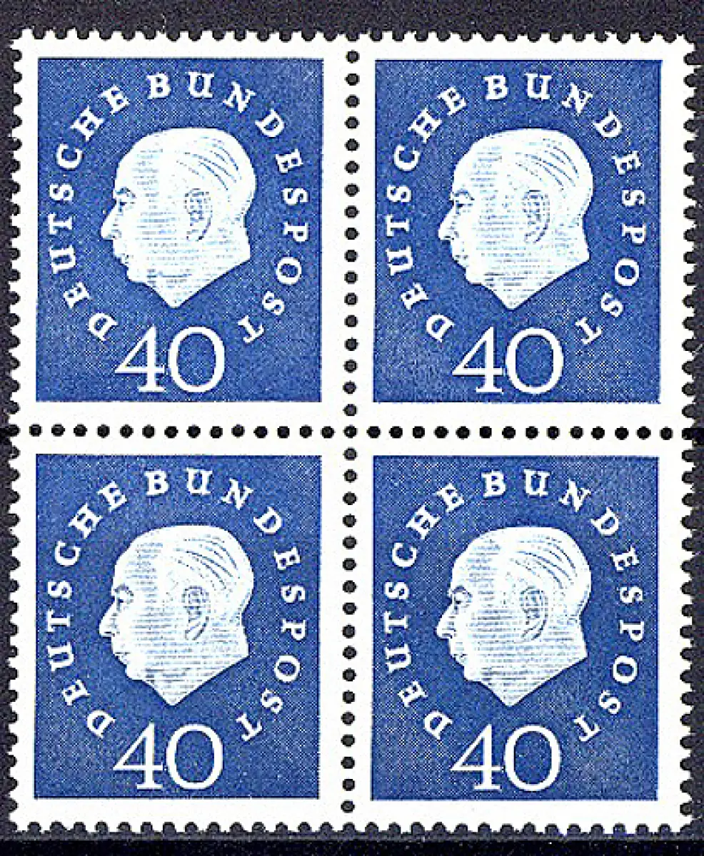 305 Heuss III 40 Pf Viererblock, postfrisch **