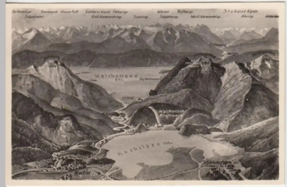 - (3057) Ansichtskarte, postcard, PPC - Walchensee, Kochelsee, Karte