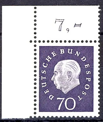 306 Heuss III 70 Pf Ecke ol ** postfrisch