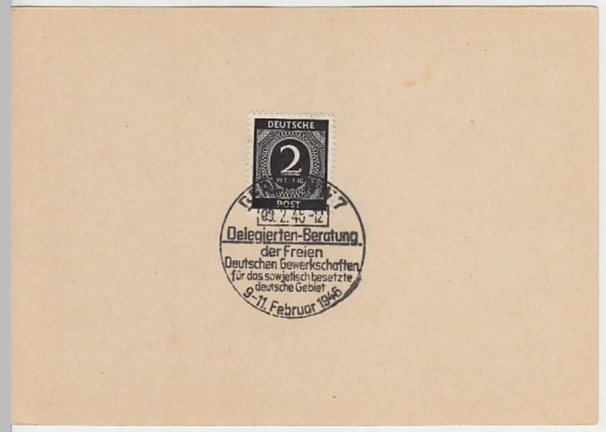 (31016) Feldpostkarte m. SSt Delegierten Beratung FDGB 1946