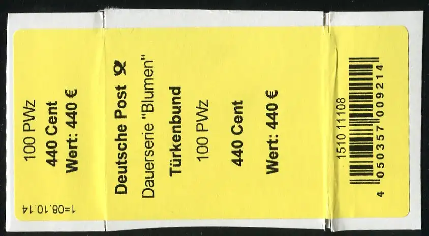 3118 Türkenbund 440 Banderole / Aufkleber, mit Datum