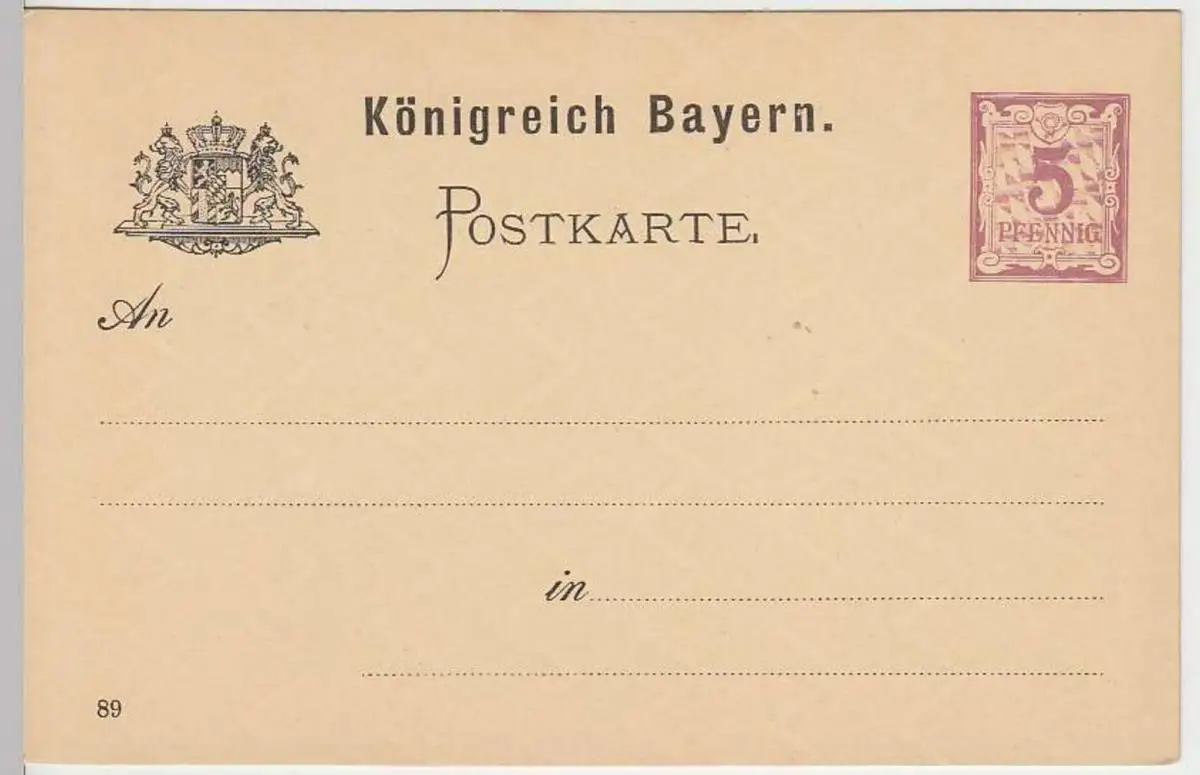- (31712) Ganzsache Bayern um 1900 unbenutzt