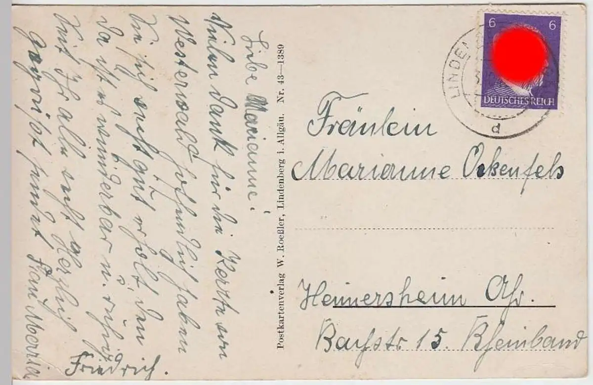 - (31791) Ansichtskarte, postcard, PPC - Lindenberg i. Allgäu, Genesungsheim, 1942