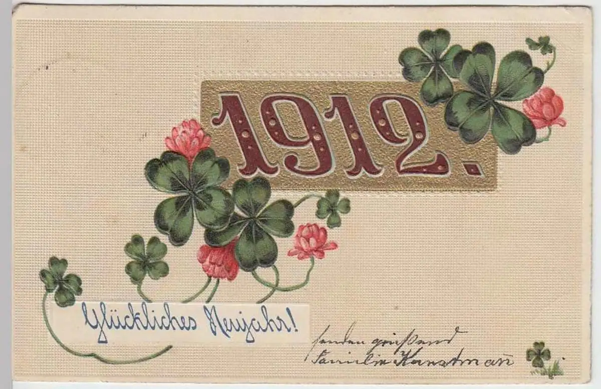 - (32499) Ansichtskarte, postcard, PPC - Glückwunsch Neujahr 1912, Gold- Prägedruck