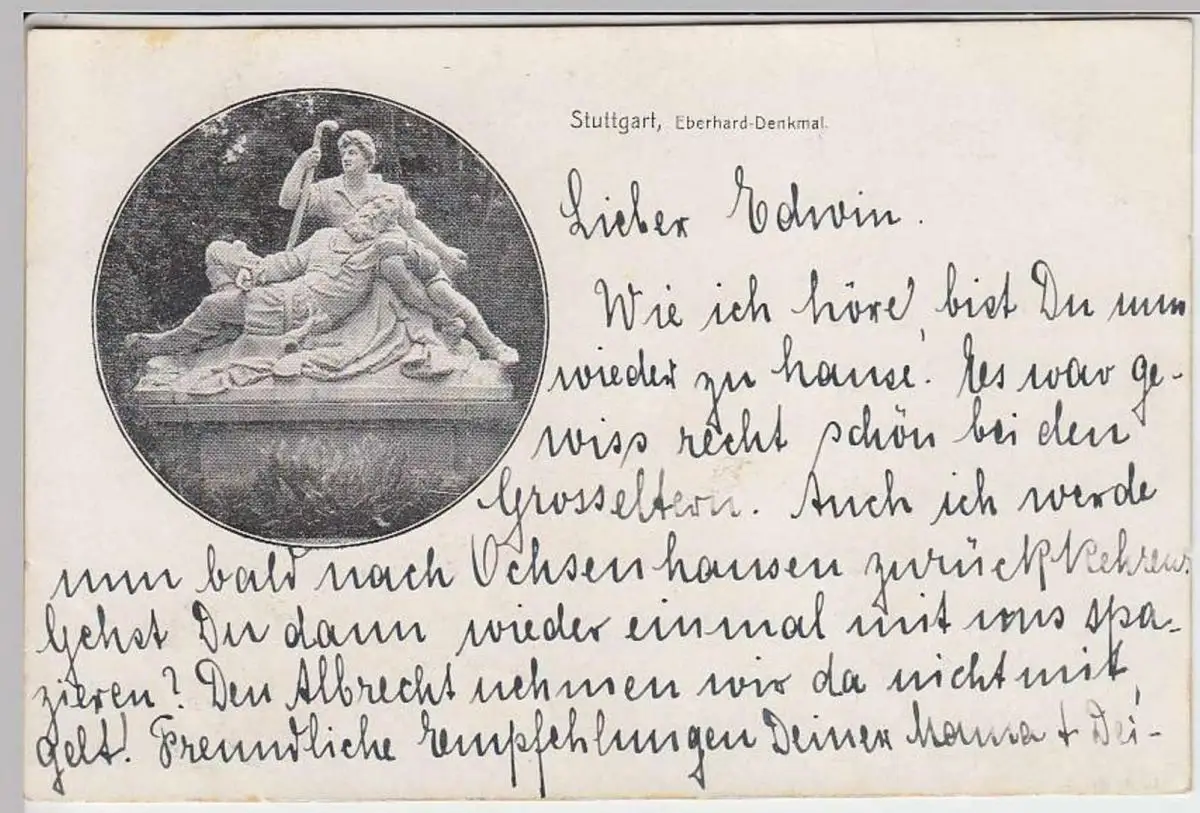 - (33021) Ansichtskarte, postcard, PPC - Stuttgart, Eberhard-Denkmal, 1907