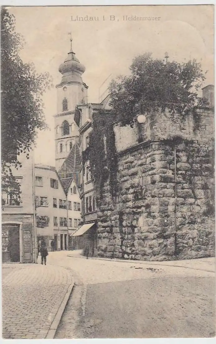 - (33071) Ansichtskarte, postcard, PPC - Lindau i.B., Heidenmauer, 1908