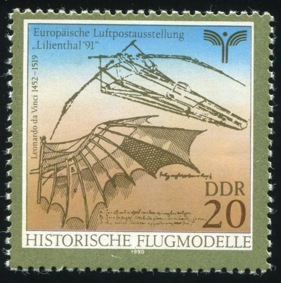 3311 Luftpost Lilienthal 20 Pf: dunkler Punkt rechts am Rand, Feld 35, **
