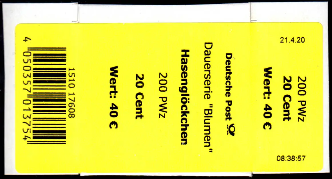 3315 Hasenglöckchen 20 +CF -608 (offene 4) Banderole 200er, kleine Nr.
