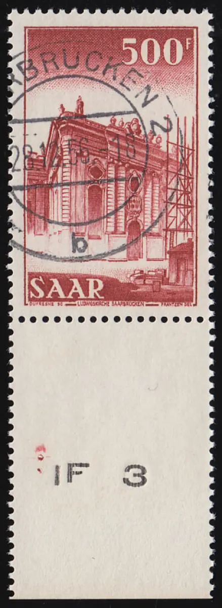 337 Ludwigskirche 500 Fr., Unterrand IF3, echt zeitgerecht O Saarbrücken 2 - b