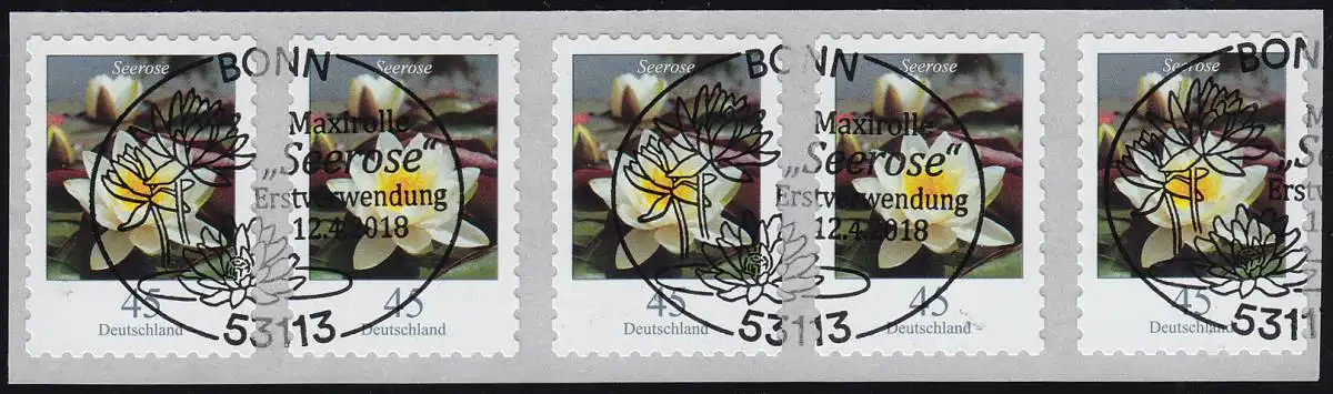 3376 Seerose 45 Cent sk 5er-Streifen UNGERADE Nummer, EV-O Bonn 12.4.2018