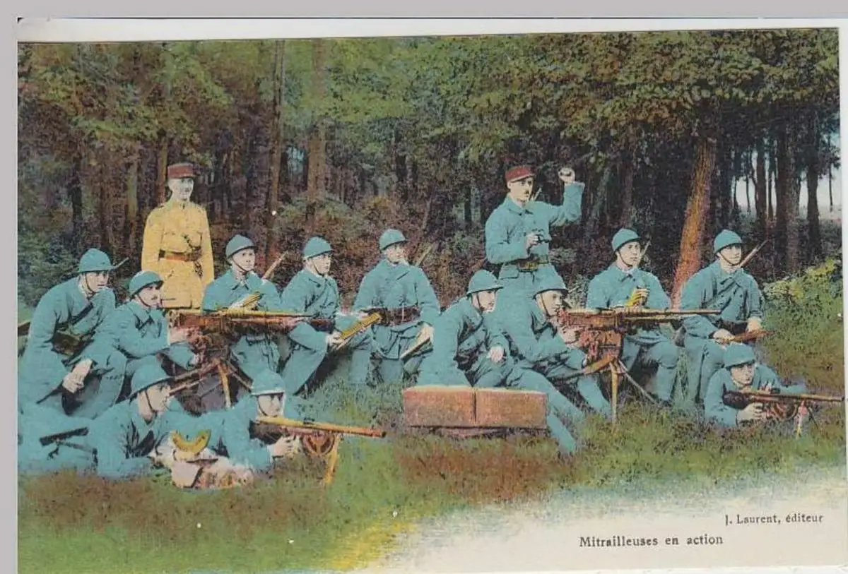- (33921) Ansichtskarte, postcard, PPC - 1.WK, Franz. Armee, Mitrailleuses en action, Masch.-Gewehre