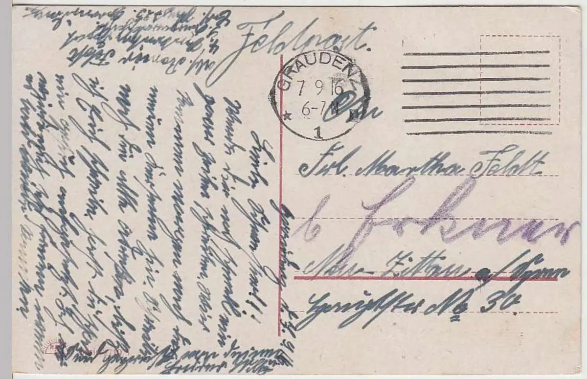 (34104) AK Patriotika "Treue Liebe!", Feldpost, Stempel Graudenz 1916