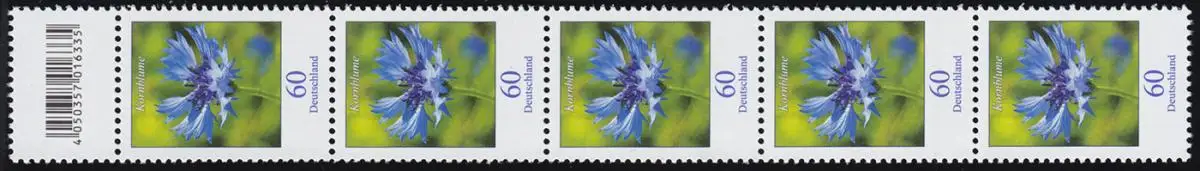 3468 Kornblume 60 Cent, 5er-Streifen mit Codierfeld, mit KLEINER Nummer **