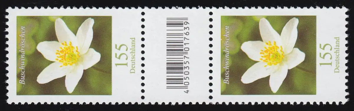 3472 Buschwindröschen 155 Cent 200er, Paar kleine Nr., Codierfeld, ohne Nr. **