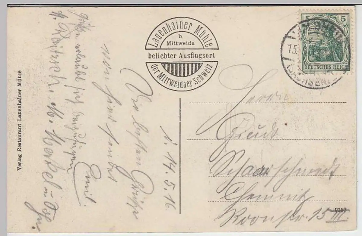 - (34863) Ansichtskarte, postcard, PPC - Mittweida, Lauenhainer Mühle, 1916