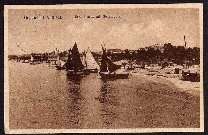 35183 AK Ostseebad Ahlbeck Strandpartie mit Segelbooten 1927