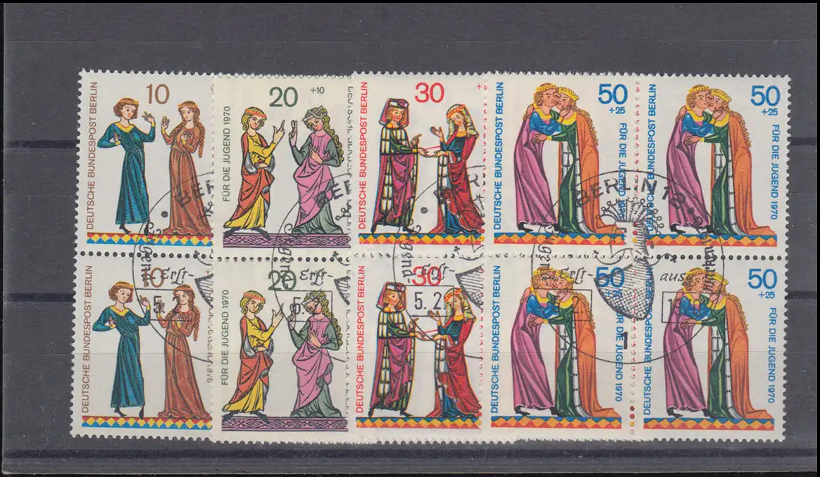 354-357 Jugend Minnesänger 1970, Viererblöcke, Satz ESSt Berlin