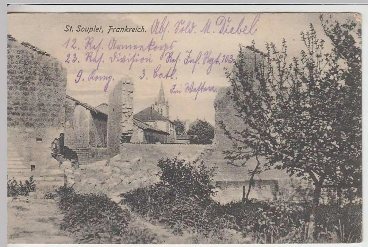 - (35685) Ansichtskarte, postcard, PPC - St. Souplet (F), zerstörtes Gebäude, 1.WK, Feldpost 1915