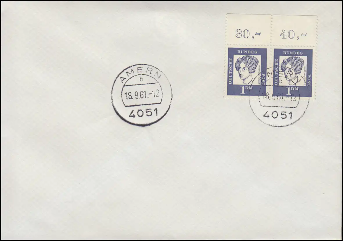 361y Bedeutende Deutsche OR-Paar Gefälligkeitsstempel AMERN 18.9.61 Blanko-FDC