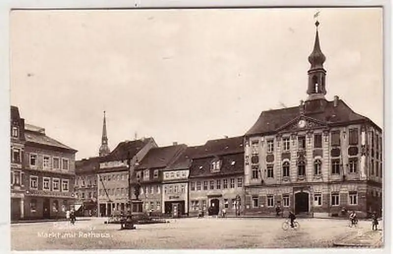 37346 Ak Radeberg Markt mit Rathaus um 1940