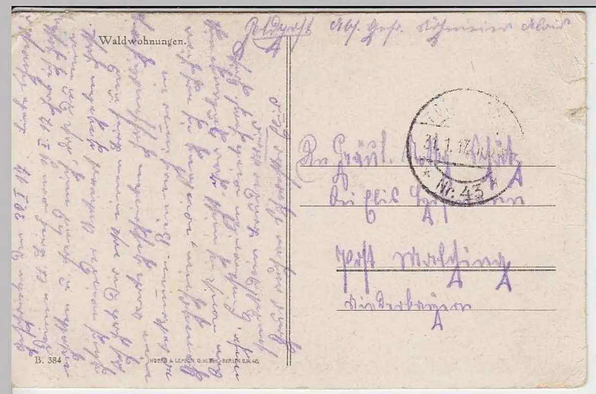- (37423) Ansichtskarte, postcard, PPC - 1.WK -Waldwohnungen-, provisorische Häuser, 1917