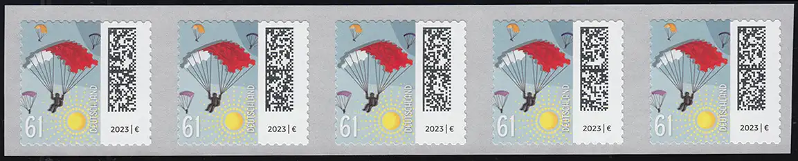 Serie: Welt der Briefe / Thema: Briefmarken, die als Gleitschirme verwendet werden, selbstklebend aus der 500er-Rolle