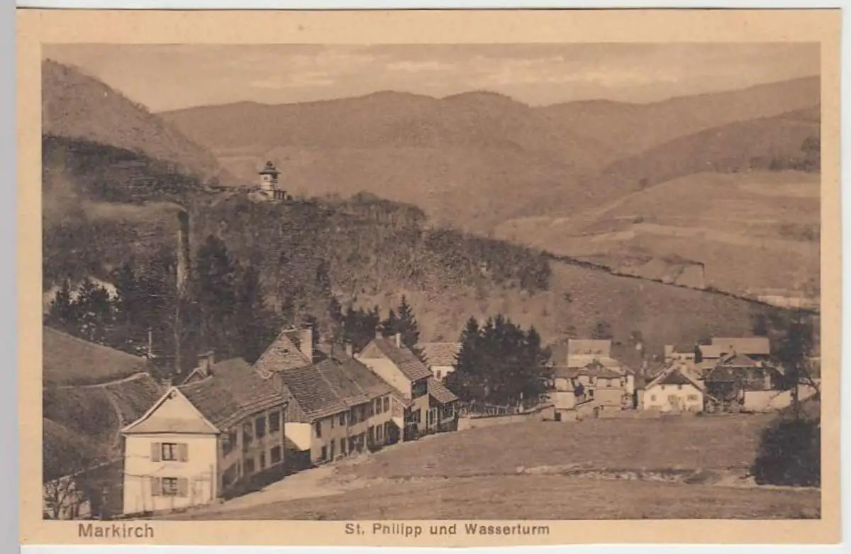 - (37450) Ansichtskarte, postcard, PPC - Markirch (Sainte-Marie-aux-Mines), St. Philipp u. Wasserturm