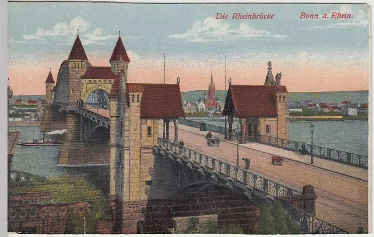 - (37940) Ansichtskarte, postcard, PPC - Bonn, Rheinbrücke, 1919