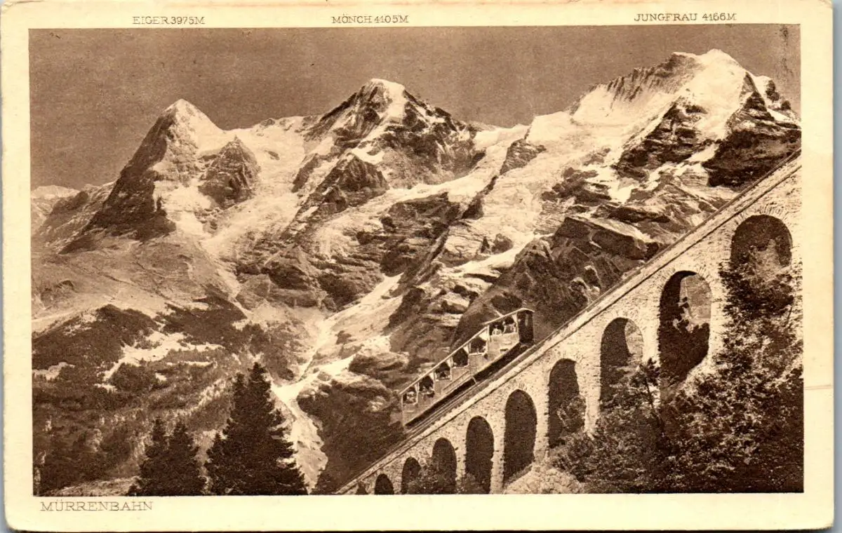 38061 - Schweiz - Mürrenbahn , Eiger , Mönch , Jungfrau - nicht gelaufen
