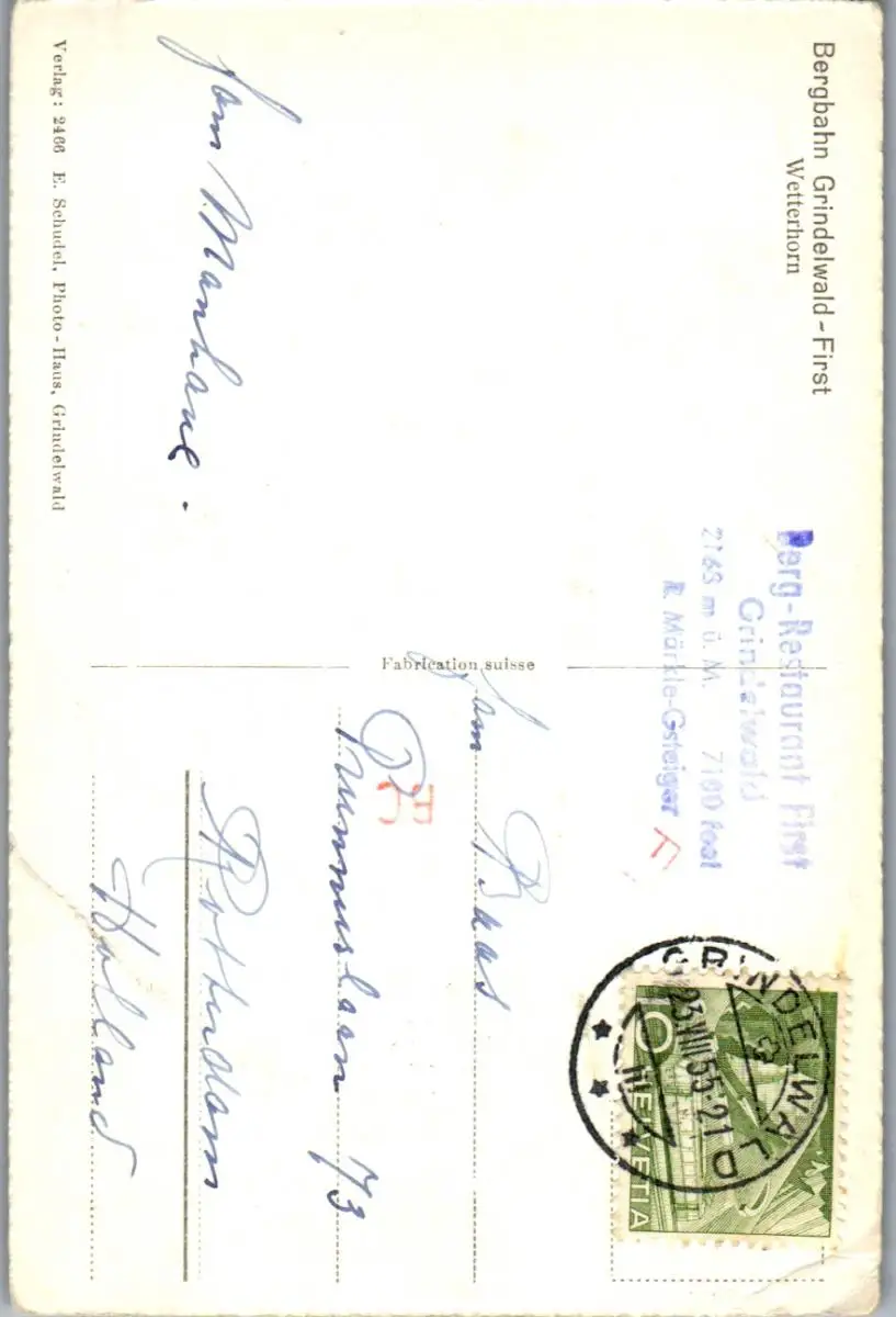 38319 - Schweiz - Grindelwald First , Bergbahn , Wetterhorn - gelaufen 1955