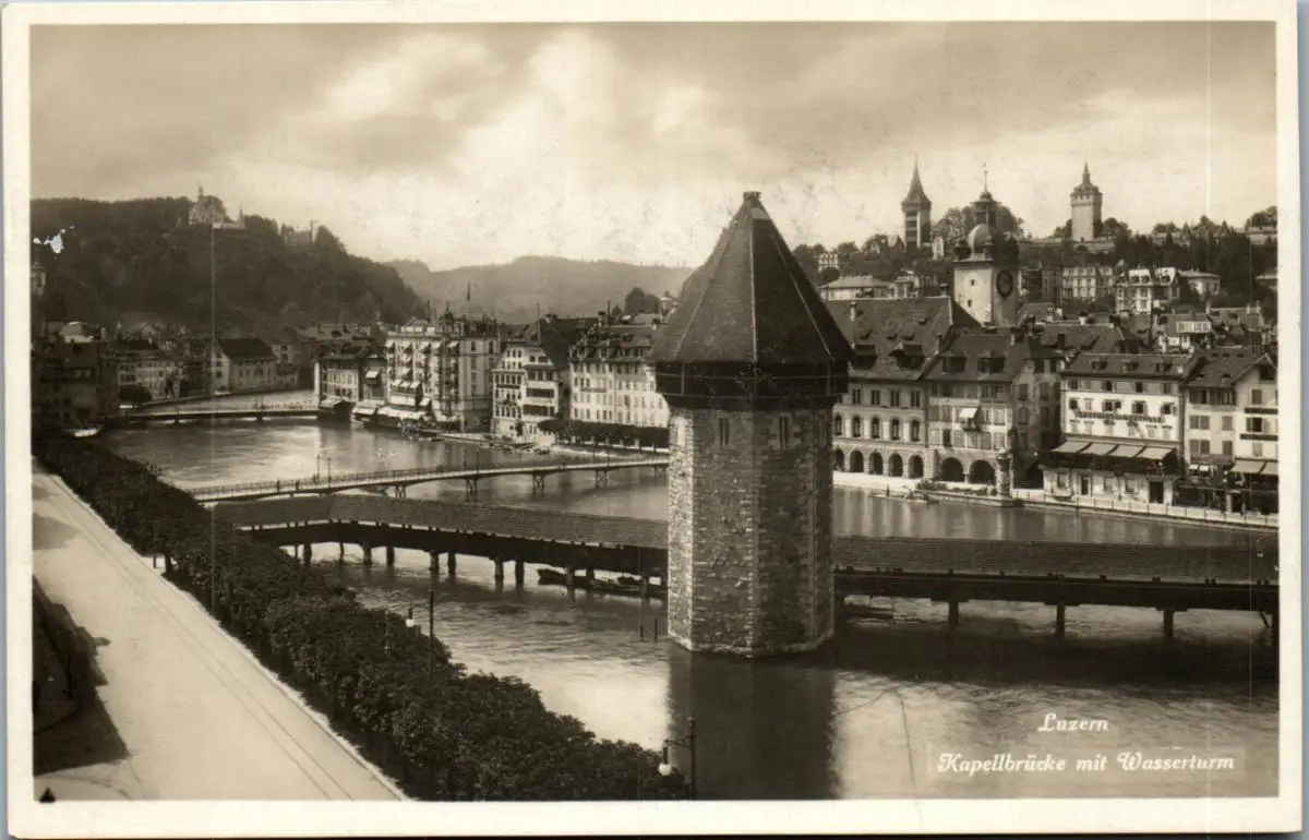 38332 - Schweiz - Luzern , Kapellbrücke mit Wasserturm - nicht gelaufen