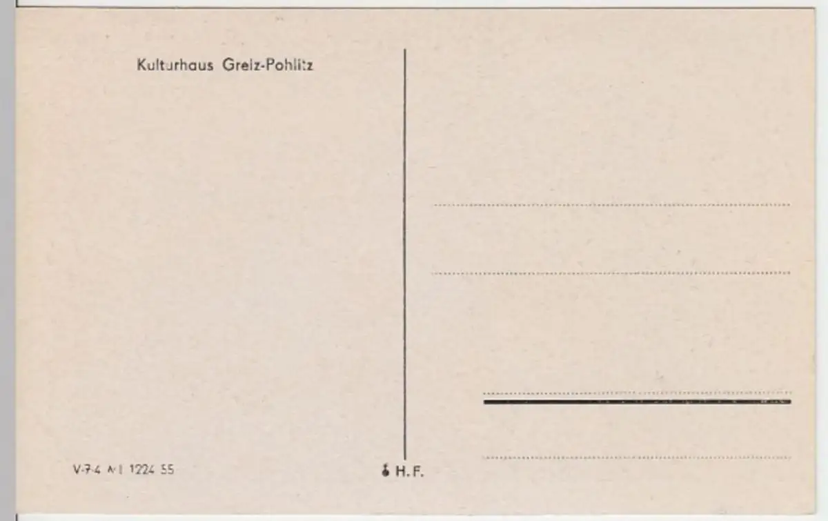 - (3854) Ansichtskarte, postcard, PPC - Pohlitz, Greiz, Kulturhaus 1950er