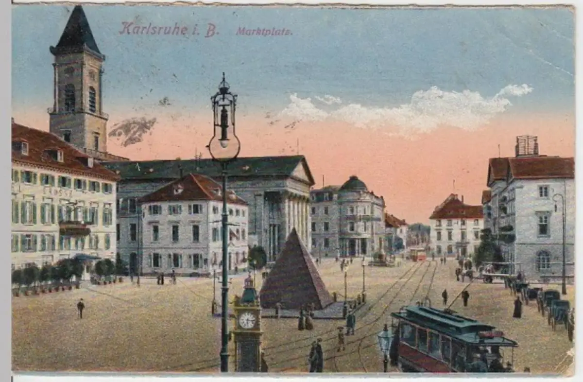 (3905) AK Karlsruhe, B.-Württ., Pyramide, Stadtkirche 1923