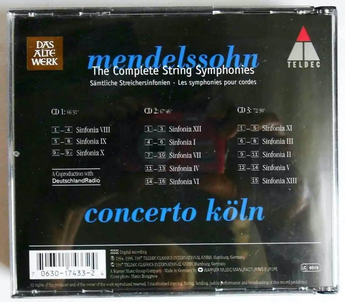 3CD Box Concerto Köln: Mendelssohn - The Complete String Symphonies (Teldec)