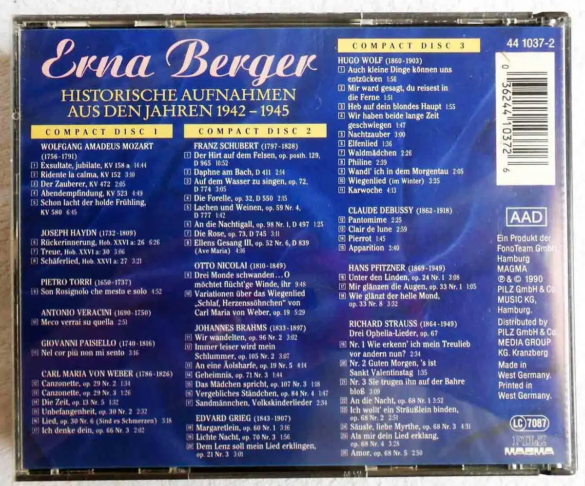 3CD Box Erna Berger: Lieder (Pilz) 1990