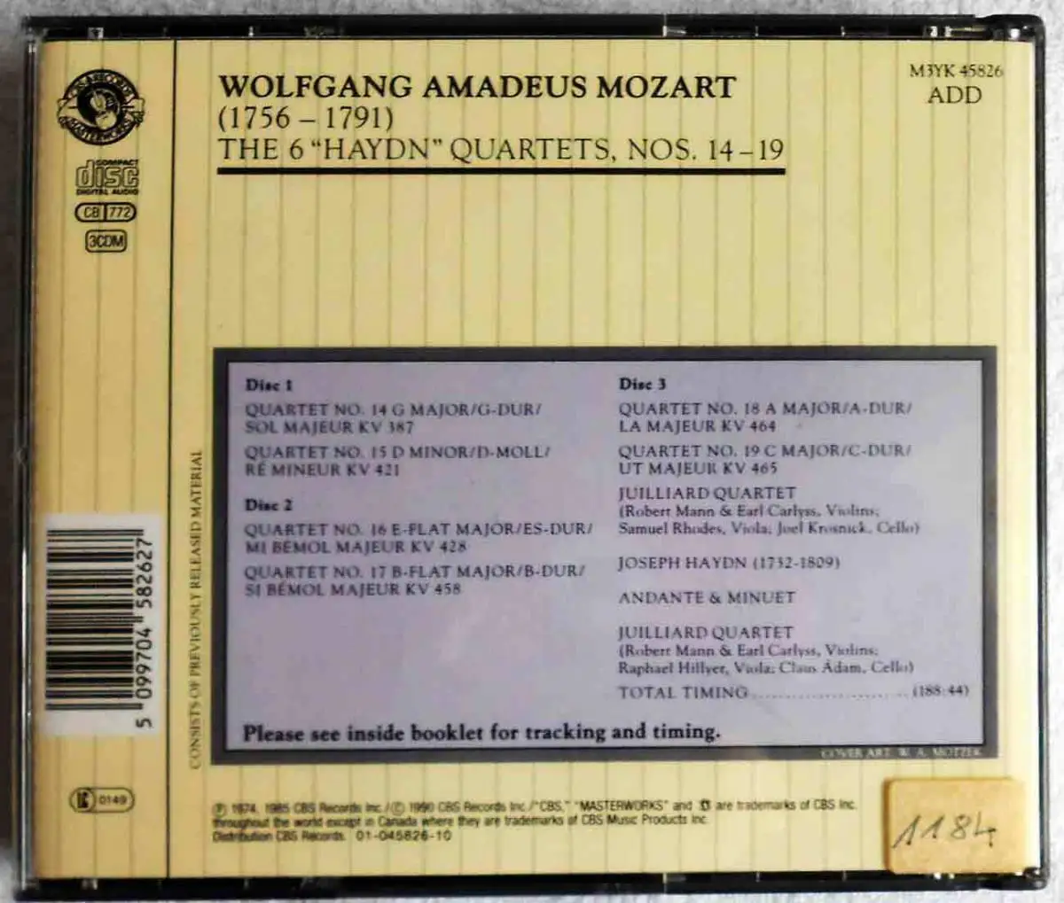 3CD Box Juillard String Quartet: Mozart The 6 Haydn Quartets (CBS) 1990