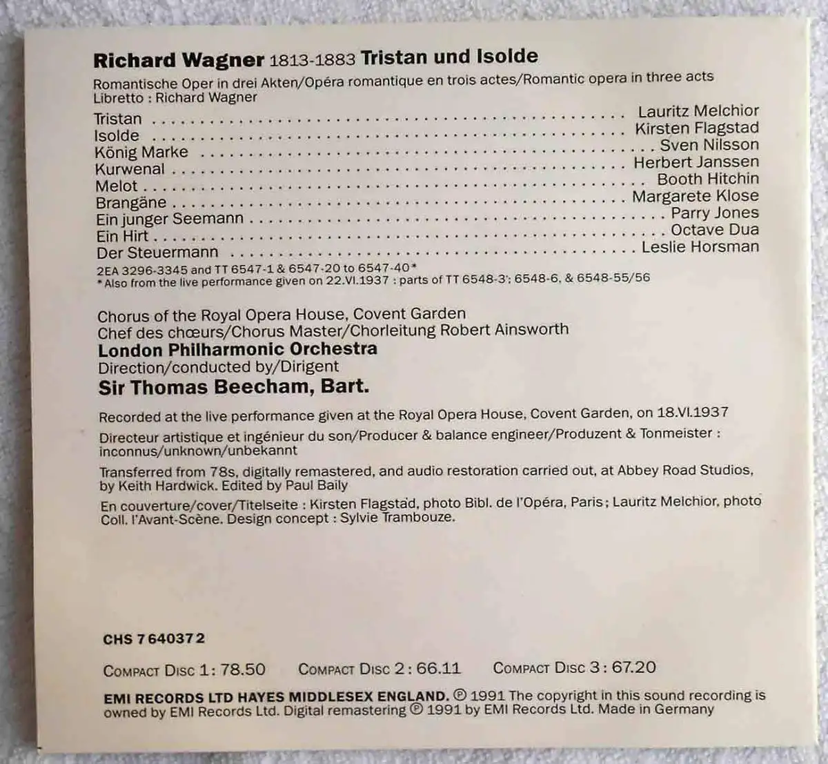 3CD Wagner: Tristan und Isolde - Sir Thomas Beecham (EMI) 1991