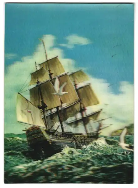 3D-AK Segelschiff in Fahrt auf stürmischer See
