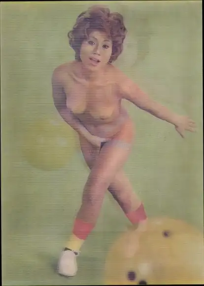 3D Ak Erotik, asiatische Frau, Bowlingkugel